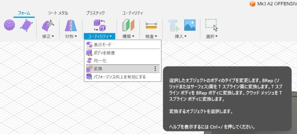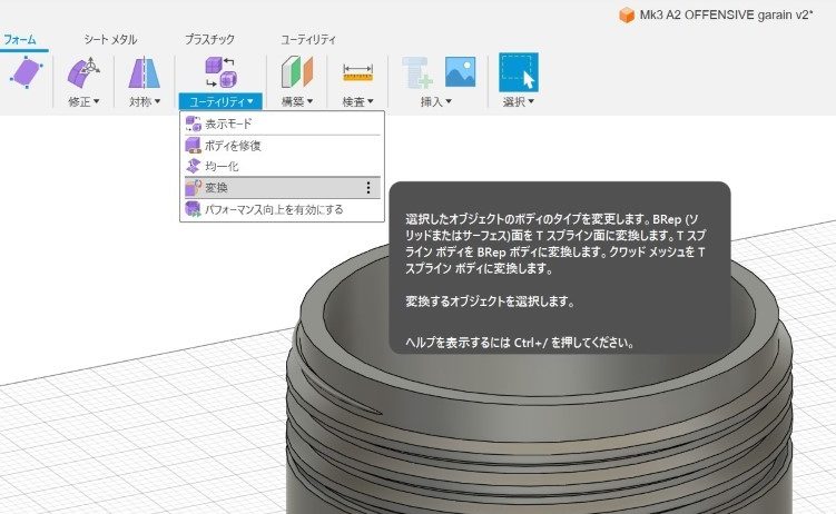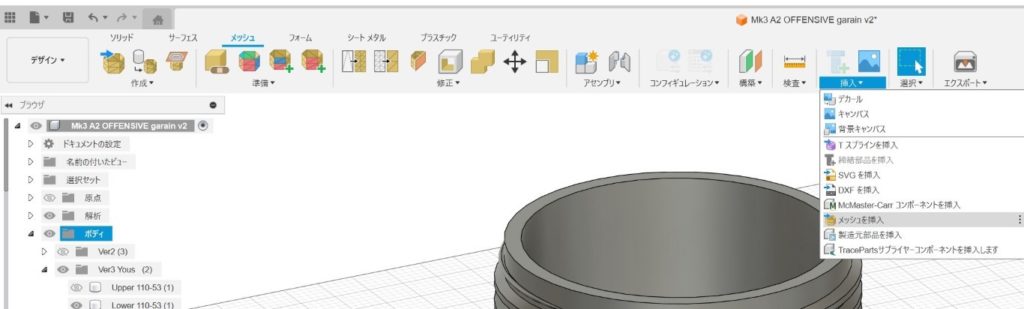 FUSION360で読み込むために、加工済みのデータをエクスポート