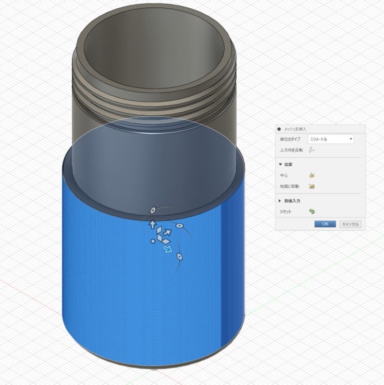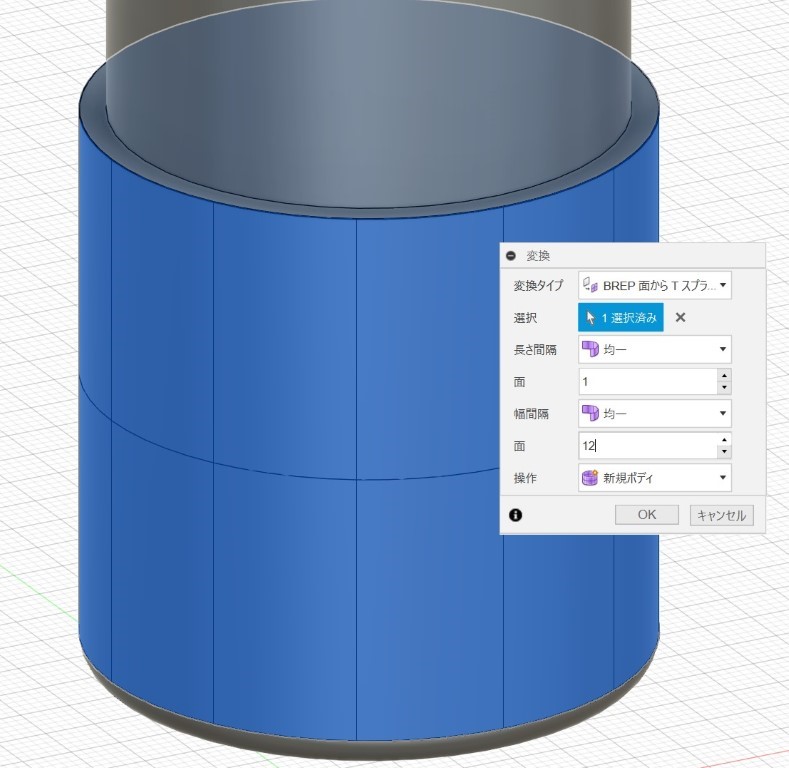 挿入すると細かい無数の面が形成されているのが分かります。※データが重いです。処理中にマウスを連打すると落ちる感じ