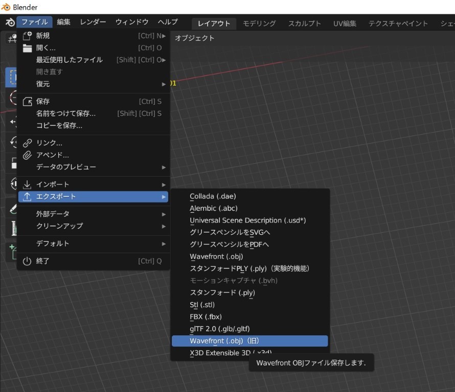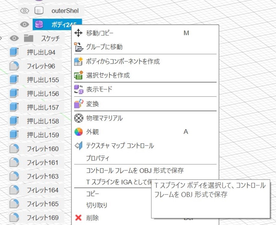 選択したボディオブジェクトをOBJ形式で出力してブレンダーで表面処理する方法