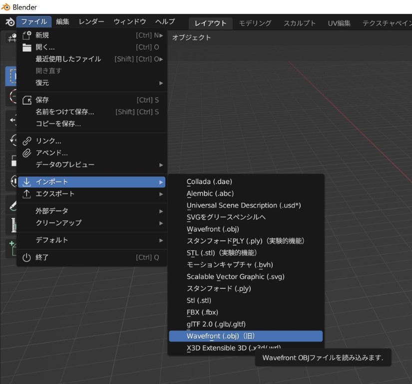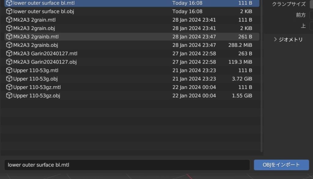 ⑤OBJファイルを読み込む インポート