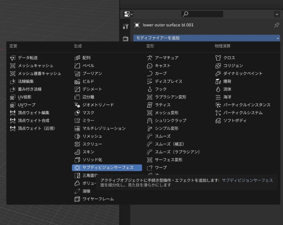 ⑥モディファイアーを追加を実行 モデルの加工