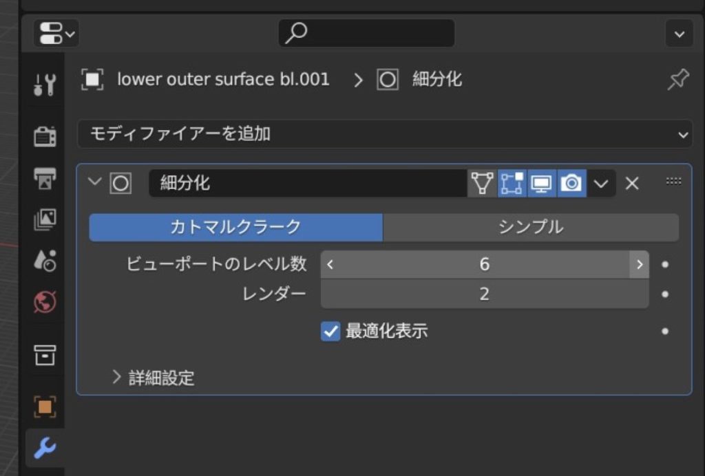 ⑦サブディビジョンサーフェスというを選択 表面処理の種類みたいなもの