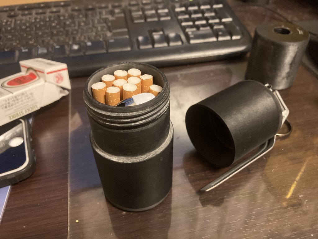 ほか、こんな感じでタバコ入れにちょうどいいかな?と思ったけどレジンの臭いがタバコに移ってしまい、、、吸うとあきらかに具合が悪くなってしまった、、、、。タバコいれにプラスチック、特にレジンなどダメ。臭いが移りにくい鉄か皮とかが良いですね。